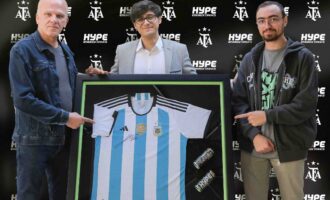 سه پیراهن رسمی تیم ملی آرژانتین با امضای لیونل مسی، ستارهی پرفروغ دنیای فوتبال، از طرف شرکت هایپ به عنوان اسپانسر رسمی تیم ملی فوتبال ...
