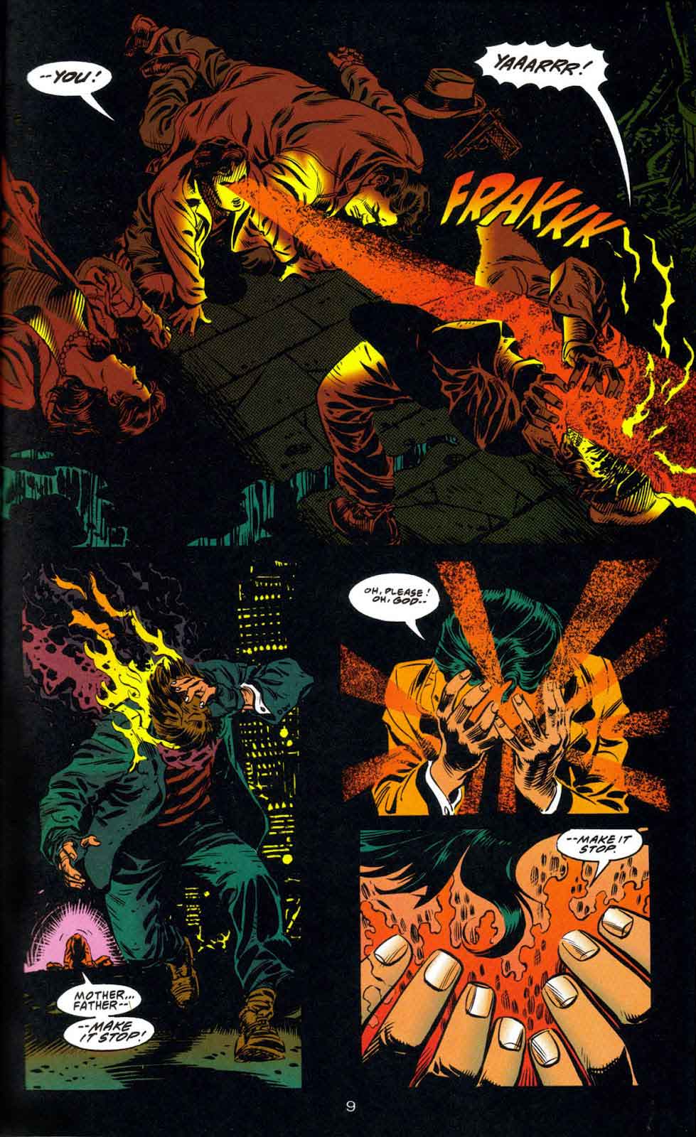 با به تن کردن رخت خفاشی (که با ماسکی برای پوشش کامل صورت همراه است)، بروس به دنبال مجازات کردن مجرمان میافتد. بتمن همیشگی تلاش میکرد تا خشمش را کنترل کند ولی این بتمن بدون هیچ رحمی و مثل خدایی خشمگین به سراغ خلافکارها میرود. با این که او هم از کشتار پرهیز میکند اما مشکلی با وارد کردن آسیب جدی به اعضای بدن یا حتی فلج کردن دشمنانش ندارد.