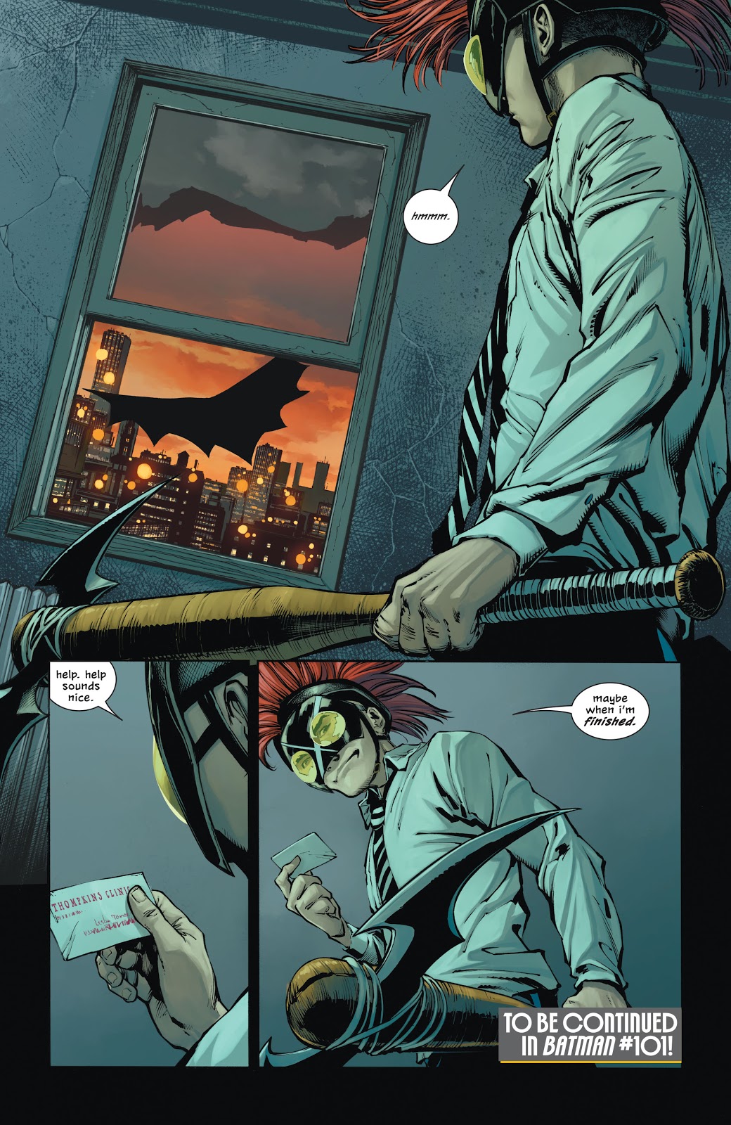 شاخصترین شخصیت جدید در ران جیمز تینیون مطمئناً پانچلاین (Punchline) بوده است؛ دستیار و معشوقه جدید جوکر که به نوعی شخصیتی کاملاً متضاد با هارلی کوئین این روزها دارد. پانچلاین در کنار دیگر زیردستان جوکر دستگیر شد اما در آخرین صفحات شماره ۱۰۰ کمیک Batman دیدیم که او با یک پیام ویدیویی خود را از هر دخالتی در قتل، شکنجه و شکستن قانون مبرا دانسته است. باید در شمارههای بعدی کمیک Batman به روند محاکمه پانچلاین نیز توجه کنیم.