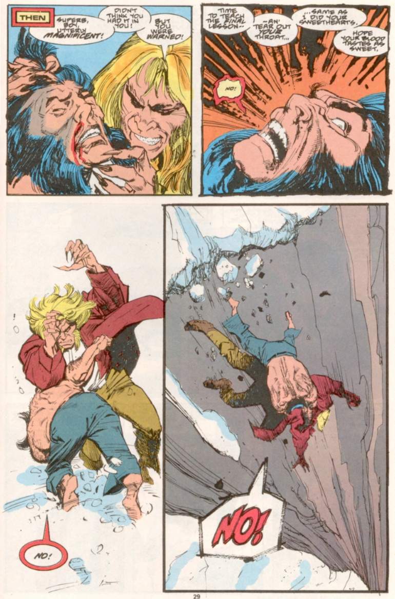 بعد از یک نبرد طولانی و خشن، سیبرتوث پیروز میشود و در حالی که میخواست گلوی ولورین را بدرد، جهشیافته درد کشیده داستان، کاری میکند تا هر دویشان از بالای صخره به پایین پرت شوند. زخمهای فیزیکی نبرد به کنار، تصور مرگ سیلورفاکس بزرگترین ضربه را به لوگان وارد کرده بود.