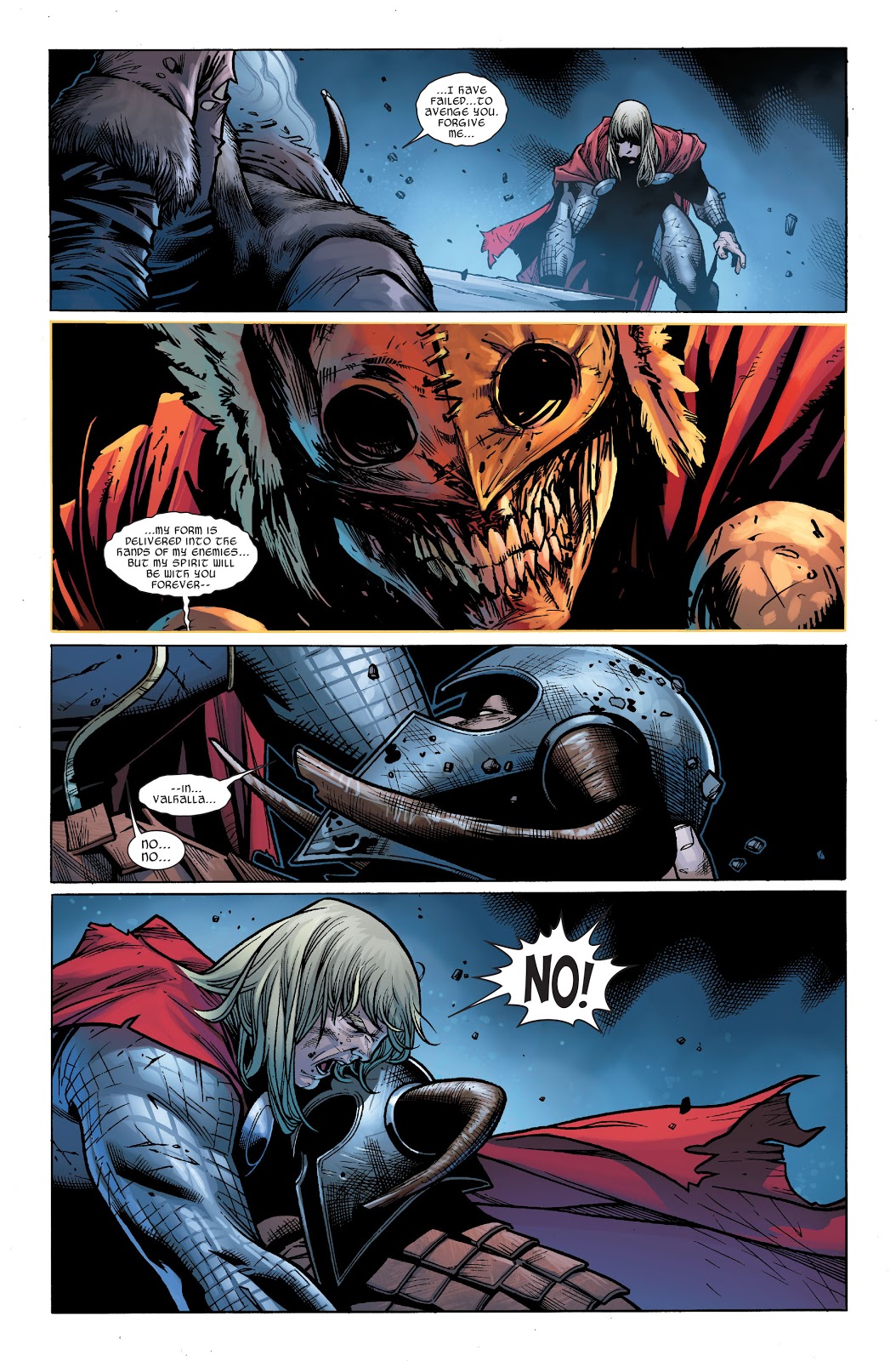 ثور متوجه است که پیشگویی شده او در نبرد با این مار از بین خواهد رفت اما خدای رعد برای مقابله با این هیولا جا نمی‌زند. هر چند او در صفحات نهایی نبرد تا سر حد مرگ توسط زهر این مار مسموم می‌شود اما می‌دانیم که قهرمانان دنیای کمیک‌ها خیلی در دنیای مردگان باقی نمی‌مانند.