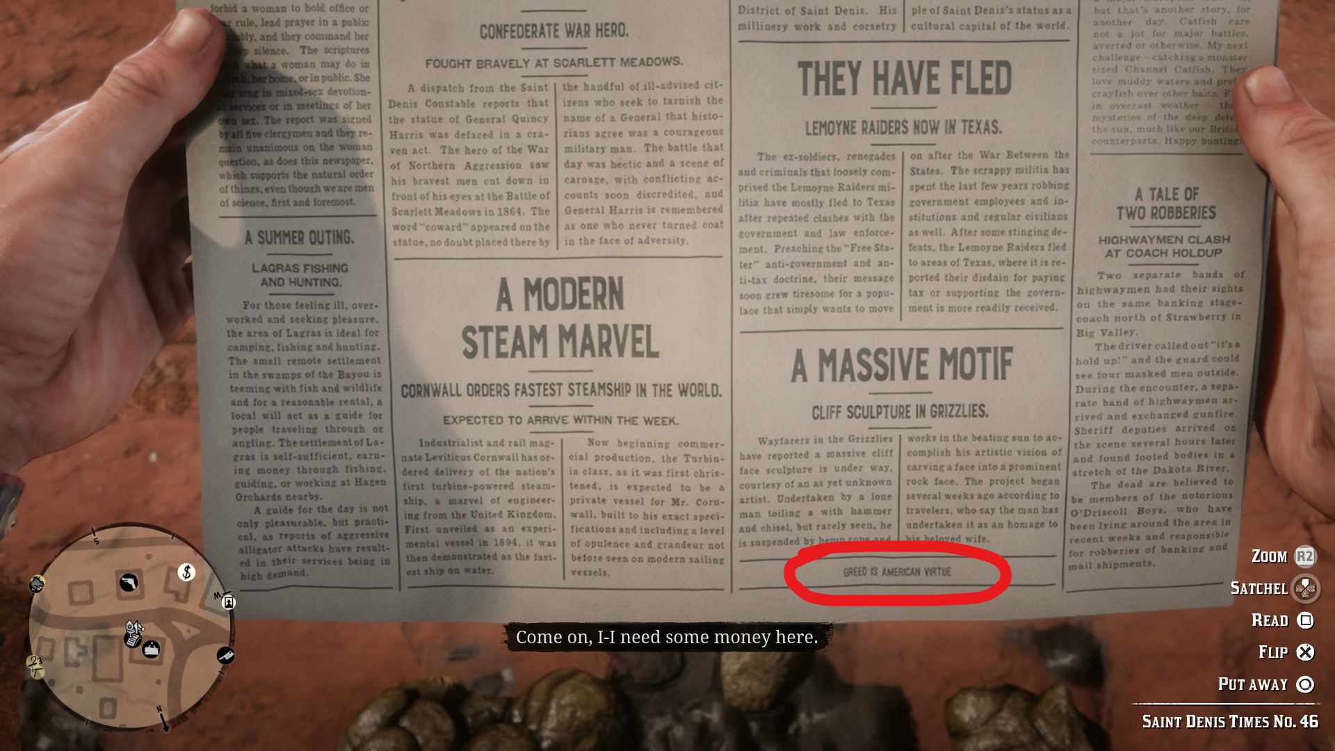 | Greed is American virtue | دریافت تعدادی از اسلحههای سنگین | بعد از اتمام مرحله Advertising, the New American Art در چپتر ۳ یک روزنامه بخرید |