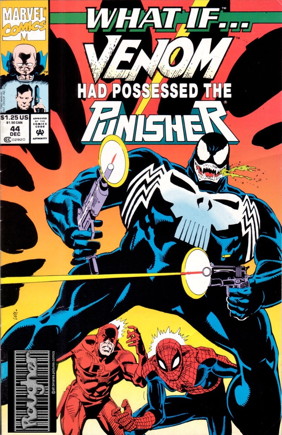 در شماره ۴۴ سری دوم کمیک What If…?، یک تغییر بزرگ برای دنیای کمیکهای مارول به تصویر کشیده میشود. وقتی مرد عنکبوتی خودش را از دست سیمبیوت فضایی نجات داد، این سیمبیوت به سراغ ادی براک (Eddie Brock) رفت و به این ترتیب ونوم به وجود آمد. با این حال، چه اتفاقی میافتاد اگر این سیمبیوت تصمیم میگرفت با پانیشر ترکیب شود؟