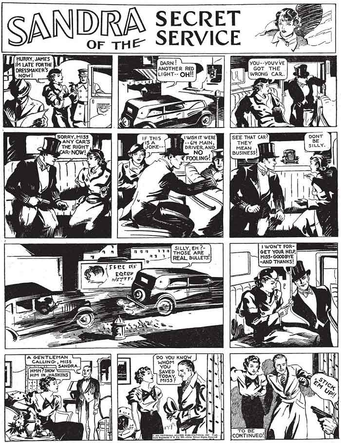 پیش از واندر وومن، سوپرگرل و بتگرل، ساندرا از سرویس پنهان وجود داشت. ماجرای ساندرا در شماره ۱ کمیک New Fun Comics، دقیقاً پس از داستان جک وودز قرار گرفته بود که باعث میشود او اولین کاراکتر مونثی باشد که در کمیکهای دیسی مورد استفاده قرار گرفت. ساندرا مکلین (Sandra McLane) زنی بود که مجبور به ورود به دنیای جاسوسی شد؛ آن هم پس از این که یک مأمور دیگر از او برای فرار از دنبال کنندگانش درخواست کمک کرد. از آن جا به بعد، ساندرا تبدیل به یک مأمور مخفی شد، مأموریتهای بینالمللی را پذیرفت و با دانشمندان دیوانه و دیکتاتورها جنگید. به مانند بسیاری از کمیکهای آن دوران، بیشتر ماجراهای ساندرا سریالیشده بودند و در بخشهای تک صفحهای به نمایش درمیآمدند.