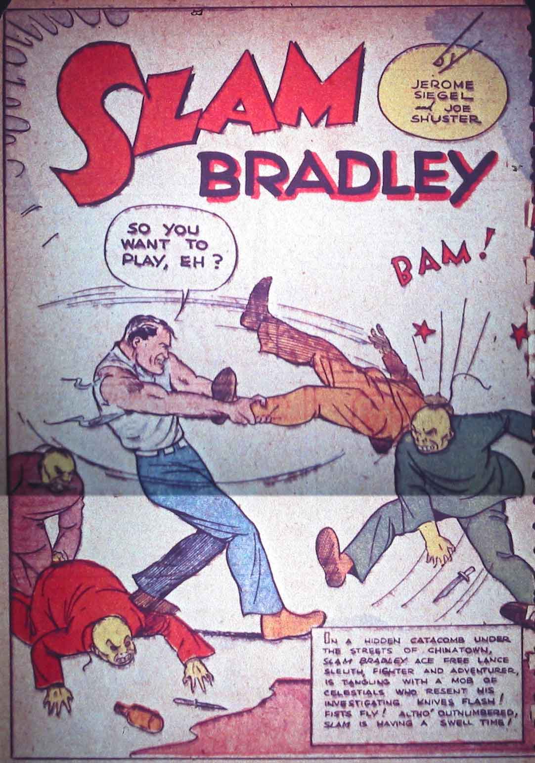 اسلم بردلی (Slam Bradley) یک کاراگاه کلهخر بود که هر جایی که میرفت برای خود دردسر میساخت. نخستین ماجراهای او در کلیولند جریان داشتند؛ محل زندگی آفرینندگانش که جری سیگل و جو شوستر بودند. اسلم، همچون اسپید ساندرس، در شماره ۱ کمیک Detective Comics معرفی شد و داستانهایش تا شماره ۱۵۲ این کمیک ادامه داشت تا او به عنوان طولانیترین شخصیت حاضر در این سری از شماره یکم شناخته شود.