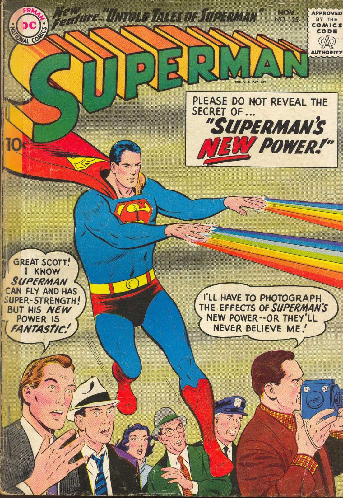 در شماره ۱۲۵ کمیک Superman، واپسین پسر کریپتون چند توانایی فراانسانی نو به دست میآورد. تمام ماجرا از آن جا شروع میشود که این کاراکتر یک سفینه فضایی مرموز را پیدا میکند و هنگامی که به آن میرسد، این سفینه منفجر میشود. بدین گونه، حتی هیچ توضیح خاصی نیز به مخاطبان داده نمیشود. بعد از آن، سوپرمن به این پی میبرد که برخی از قابلیتهایش دگرگون شدهاند و تواناییهای جدیدی به دست آورده است.