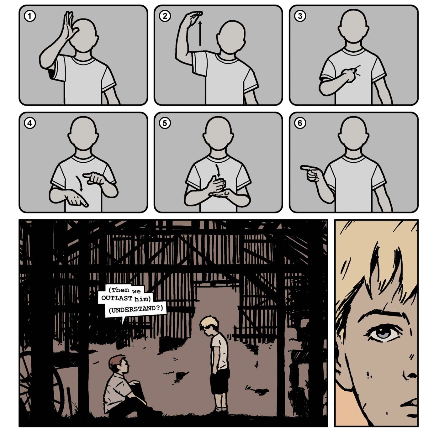 یک شماره از این سری شامل همان تعداد دیالوگی بود که از منظر گوشهای ناشنوای کلینت «شنیده» میشوند که در صفحات کمیک یا به شکل زبان اشاره آمریکایی یا لبخوانیهای دقیق به تصویر کشیده شده بودند. در همان شماره کمیک، این دو هنرمند همچنین مشخص میکنند که از دست دادن شنوایی چیزی بود که کلینت در اوایل زندگیاش نیز به دست پدر خود تجربه کرده است؛ پدری که به طور مداوم او و برادرش بارنی (Barney) را مورد ضرب و شتم قرار میداد.