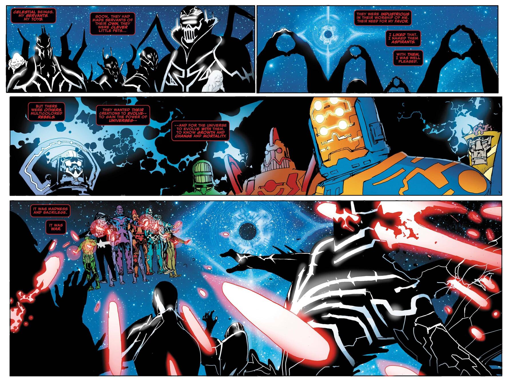 شماره ۶ کمیک Ultimates 2 نشان داد که خود سلستیالها یک خالق دارند: فرست فیرممنت (First Firmament)؛ یک تجلی زنده از اولین هستی. سلستیالها و همزادهایشان، اسپیرنتها (Aspirant)، قرار بود خدمتگذاران فرست فیرممنت باشند.
