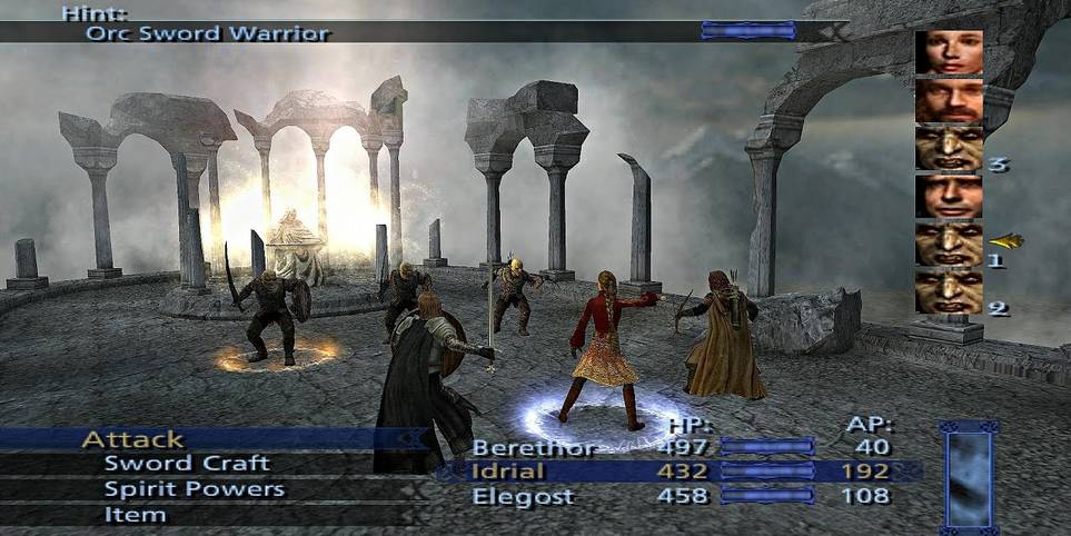 و مجددا یک بازی اقتباسی دیگر از عناوین تالکین. البته اگر بخواهیم دقیقتر بگوییم، بازی اقتباسی از فیلمهای ارباب حلقههاست. بازی بر خلاف دیگر آثار مشابه (اقتباسی از روی عناوین سینمایی) یک عنوان هک اند اسلش نبوده و این بار سازندگان به سراغ یک بازی نوبتی رفتهاند. در واقع سیستم بازی تقریبا مشابه چیزی است که در Final Fantasy X شاهد آن بودهایم. شباهت بازی تا حدی زیاد است که جای تعجب دارد که چه طور سازندگان درگیر یک پرونده حقوقی نشدهاند.