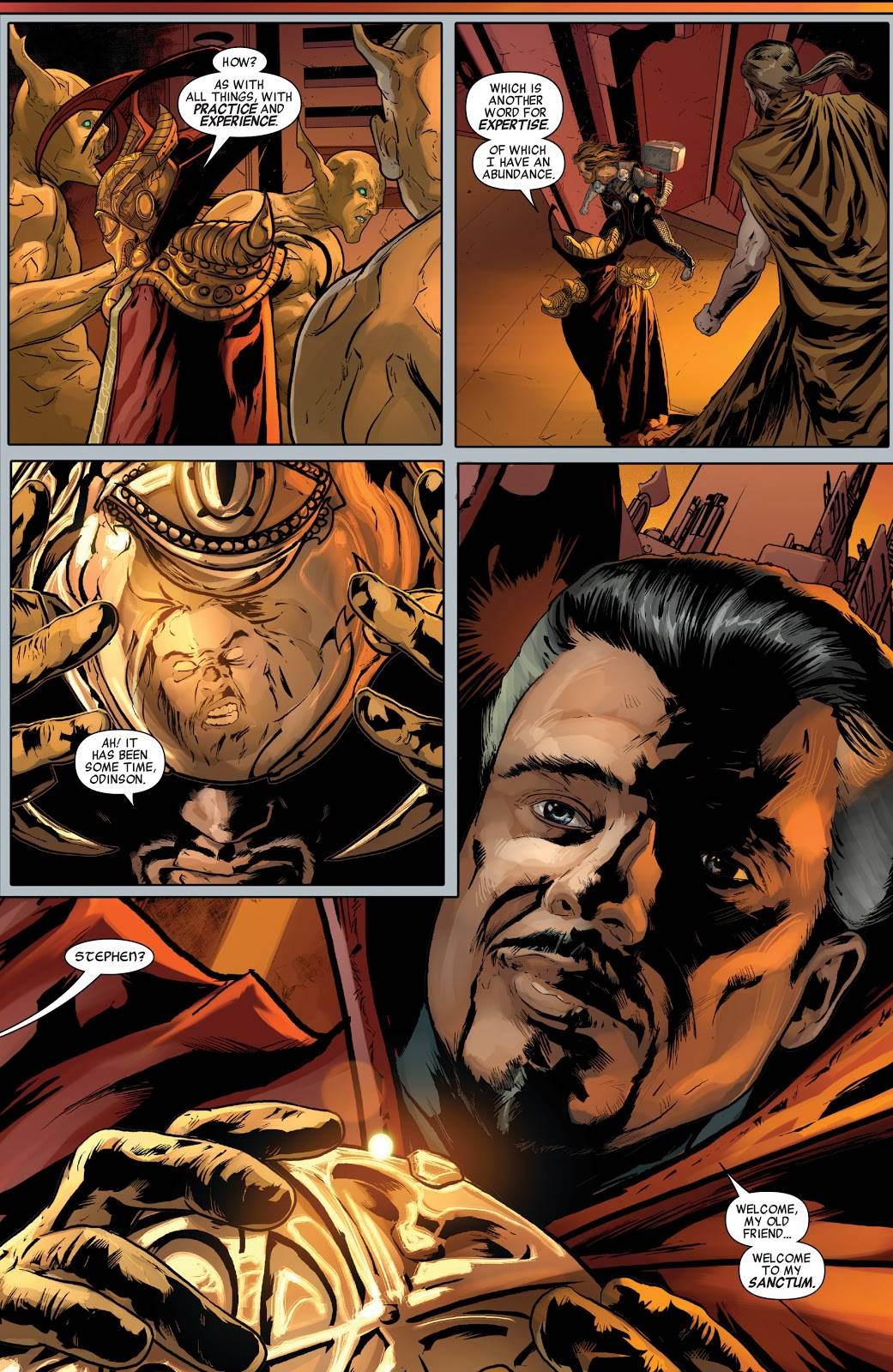 وقتی در شماره ۳۸۱ کمیک Doctor Strange، لوکی تبدیل به جادوگر عالیرتبه میشود، استفن استرنج تقریباً تمام قدرتهایش را از دست میدهد. لوکی تمام قدرتهای او را گرفته و وقتی استرنج متوجه میشود که نمیتواند در تقابل رو در رو او را شکست دهد، تصمیم میگیرد به سراغ اودین برود. اما چیزی که باعث تعجب جادوگر عالیرتبه سابق میشود این است که حالا کال بورسان (Cul Borson) به ازگارد حکومت میکند.