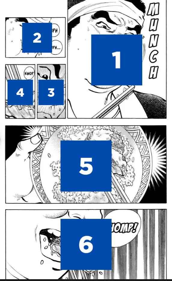 شیوه خواندن یک صفحه کمیک با زبان راست به چپ (برای دیدن اندازه کامل روی تصویر تپ/کلیک کنید)