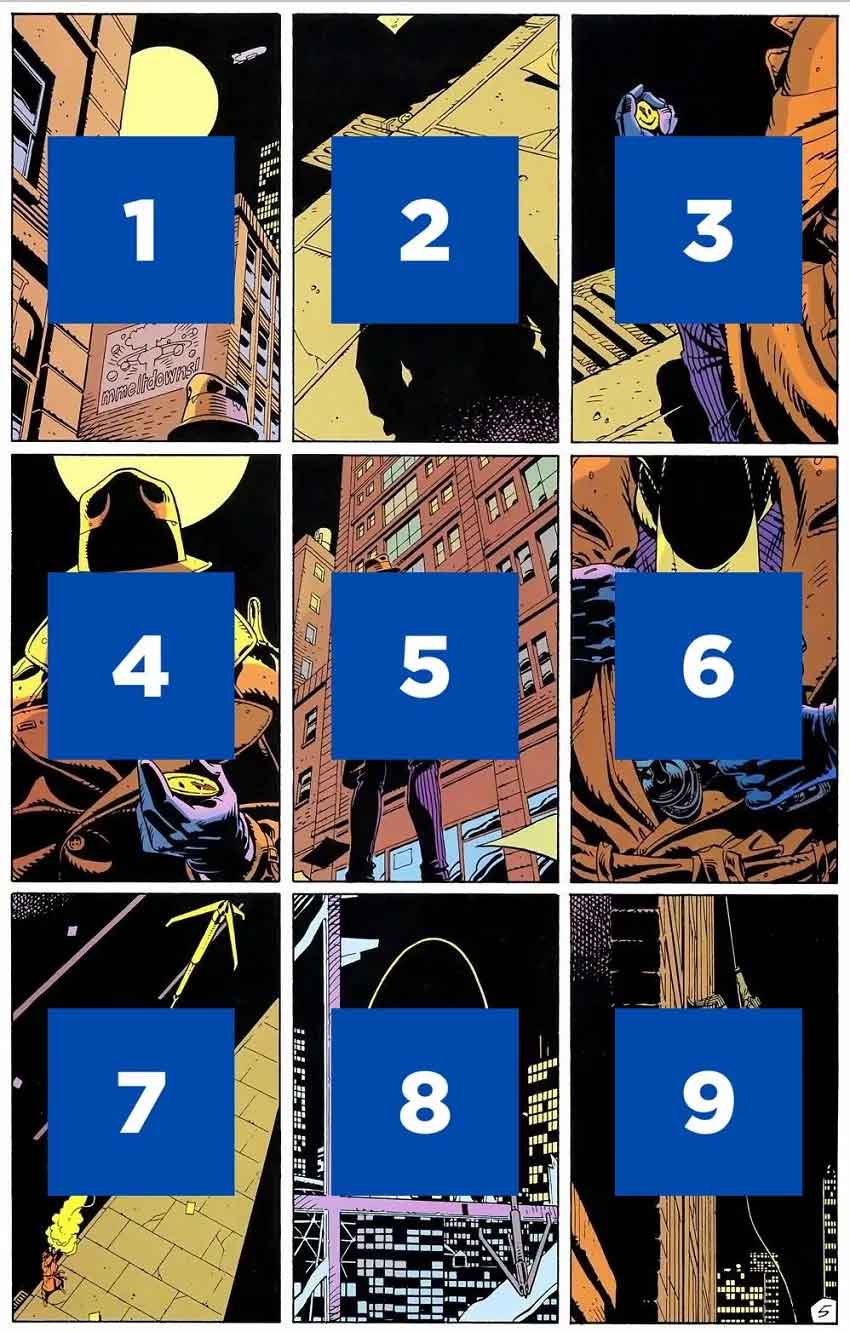 شیوه خواندن یک صفحه ساده ۹ پنلی (برای دیدن اندازه کامل روی تصویر تپ/کلیک کنید)