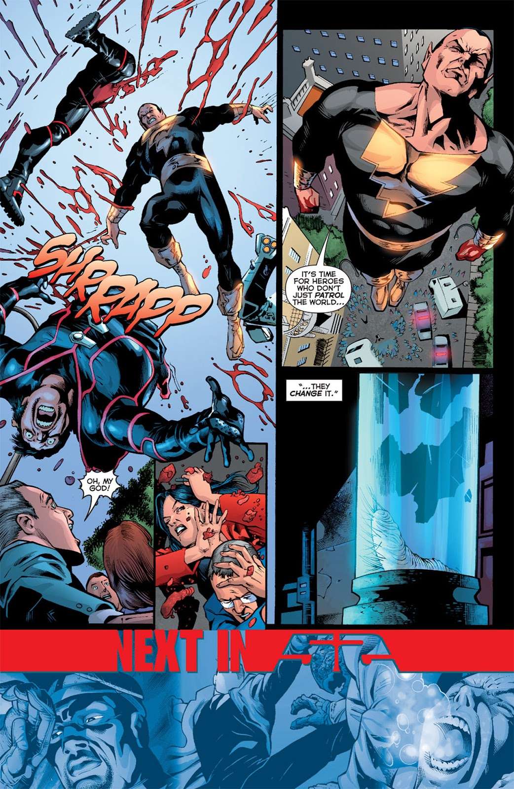 امان به دنبال این بود تا با قدرت مشترکشان به مردم کمک و شرارت را از اربابان بردهدار پاک کنند. منتهی آدام به دنبال انتقام بود. وقتی امان آذرخش تبدیل کنندهاش را احضار کرد، آدام ظاهراً برادرزاده خودش را از بین برد تا این قدرت را با دیگران شریک نشود. بلک آدام به این اتفاق به عنوان فداکاری امان اشاره میکند و بر اساس این ماجرا به بیلی بتسون هشدار میدهد که حاضر است دست به هر کاری بزند تا «این دنیا را از کسانی که آن را به بردگی کشیدهاند آزاد کند».