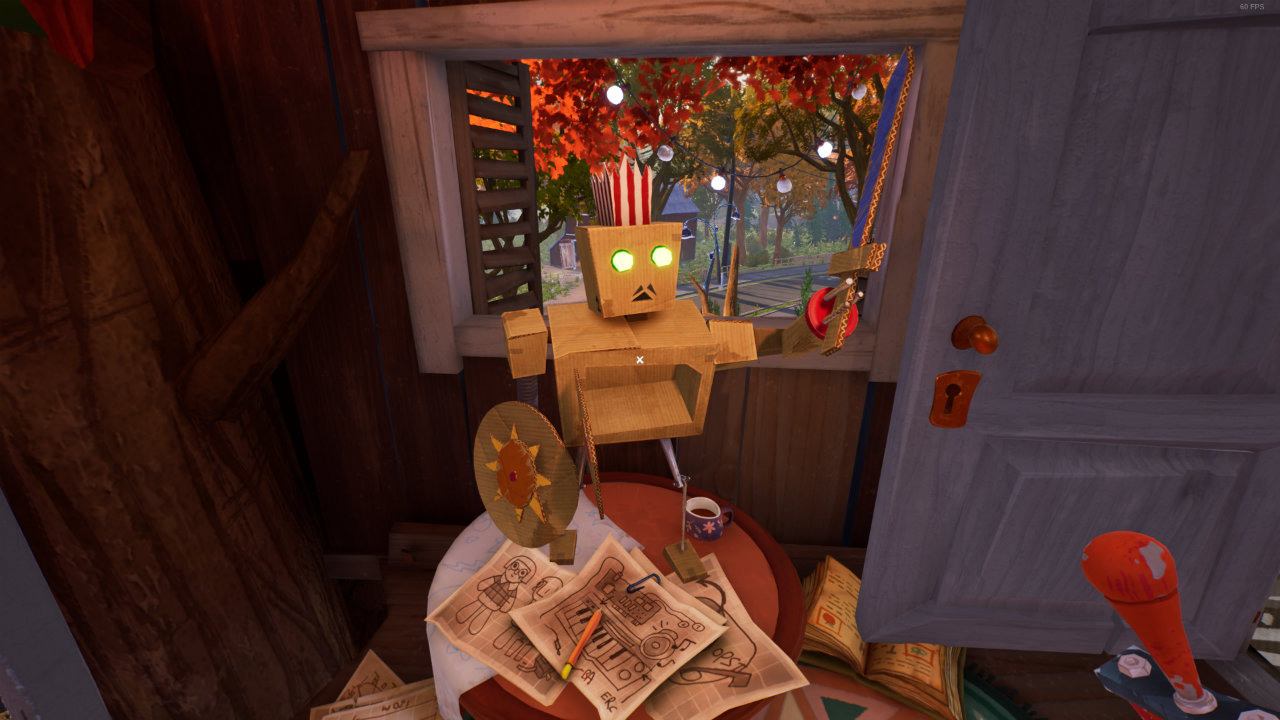 محیط بازی بزرگ است، اما آن چیزی نیست که سازندگان گفته بودند و اصلا این بزرگی به هیچ دردی هم نمیخورد. شما میتوانید آزادانه در محلهای که طراحی شده بچرخید اما نمیتوانید وارد تمام خانهها شوید. فقط ۳-۴ خانه در محیط قابل ورود هستند و پازلها یا سرنخهایی برای حل کردن در آنها تعبیه شده. خبری از شخصیتهای متنوع و زیاد نیست و حتی شخصیت Secret Neighbor هم غیر از کاتسین ابتدایی بازی دیگر دیده نمیشود. اینها همه قولهایی بودند که سازندگان بازی دادند و یکی پس از دیگری پوچ از آب درآمدند. برای تمام کردن بازی تنها به ۲-۳ ساعت زمان نیاز دارید. اگر با دنیای Hello Neighbor آشنایی داشته باشید پیدا کردن سرنخها و حل کردنشان اصلا زمان نمیبرد. درواقع بسیاری از این پازلها بدون هیچ پیچش خاصی طراحی شدهاند و گذشتن از آنها فوقالعاده ساده است. همچنان میتوانید با استفاده از پریدن یا پیدا کردن یک گلیچ وارد محیطهای ممنوعه شوید، اما این بار دیگر اجازه دسترسی به مکانیزمهای آن محیط را ندارید. تنها با پیشروی در پازلهاست که میتوانید به معماهای بعدی دسترسی پیدا کنید.