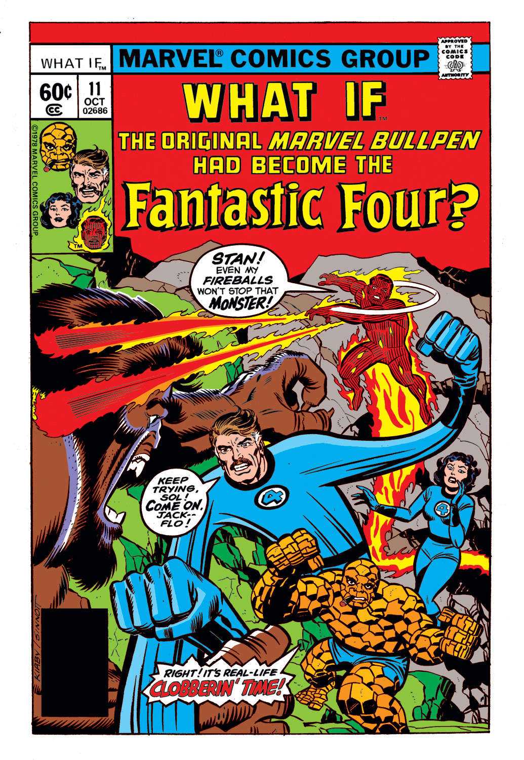 چه میشد اگر نویسندههای اولیه مارول تبدیل به چهار شگفت انگیز میشدند؟ این طور شد که استن لی تبدیل به مستر فنتستیک شد، فلو استاینبرگ (Flo Steinberg) تبدیل به زن نامرئی، جک کربی به ثینگ و در نهایت سول برادسکی (Sol Brodsky) شد هیومن تورچ (Human Torch!)! به این ترتیب یک کمیک What If? با شوخیهایی بین خود این نویسندهها پدید آمد.