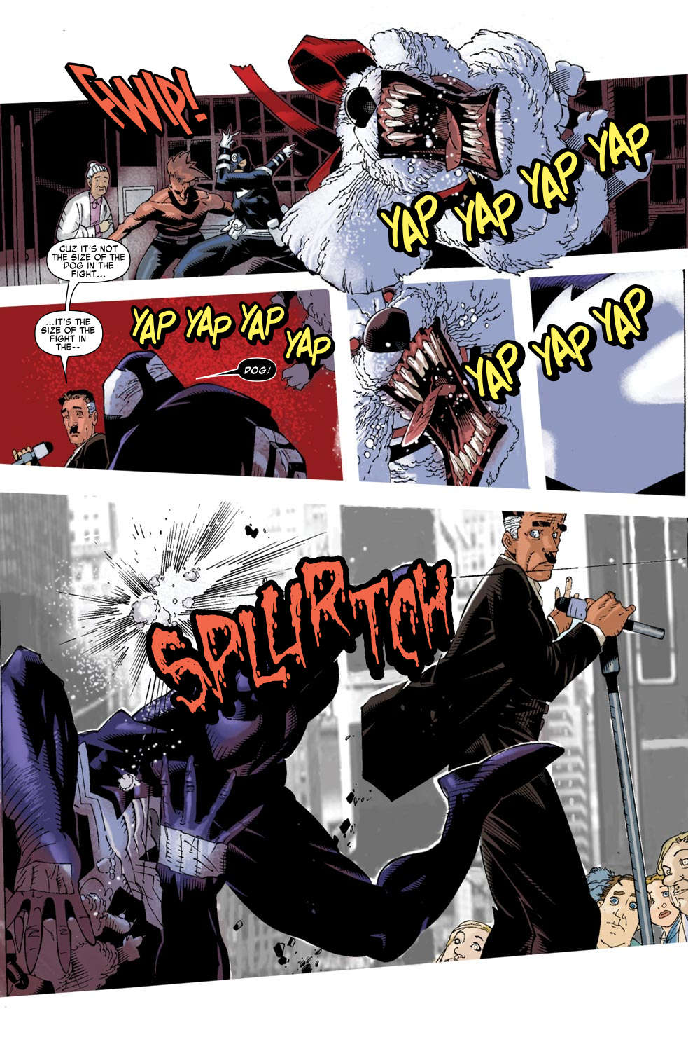 در طی شماره ۴ کمیک Dark Reign: The Sinister Spider-Man، بولزآی در یک لحظه تصمیم میگیرد تا یک حیوان را به سمت ونوم پرتاب کند. لستر با الهام گرفتن از نقل قول جی. جونا جیمسون در مورد «میزان جنگ در سگ» یک سگ را به سمت ونوم پرتاب کرد تا با کم کردن سرعت ونوم، بتواند در برود.