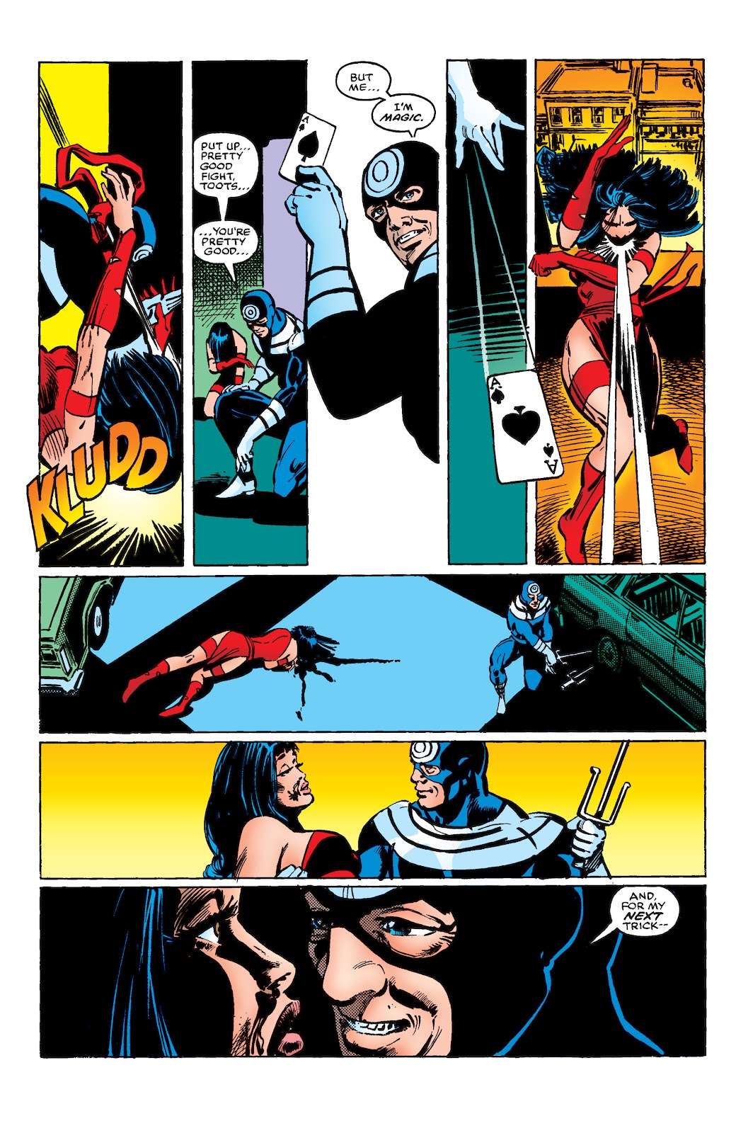 اگر یک فرد بتواند با کارت بازی آدم بکشد، غیرقابل اجتناب به نظر میرسد که یک تکه نازک مقوای تا خورده را نیز در مقطعی مورد استفاده قرار دهد. این دقیقاً روشی بود که بولزآی از آن برای هدف قرار دادن دردویل استفاده کرد.