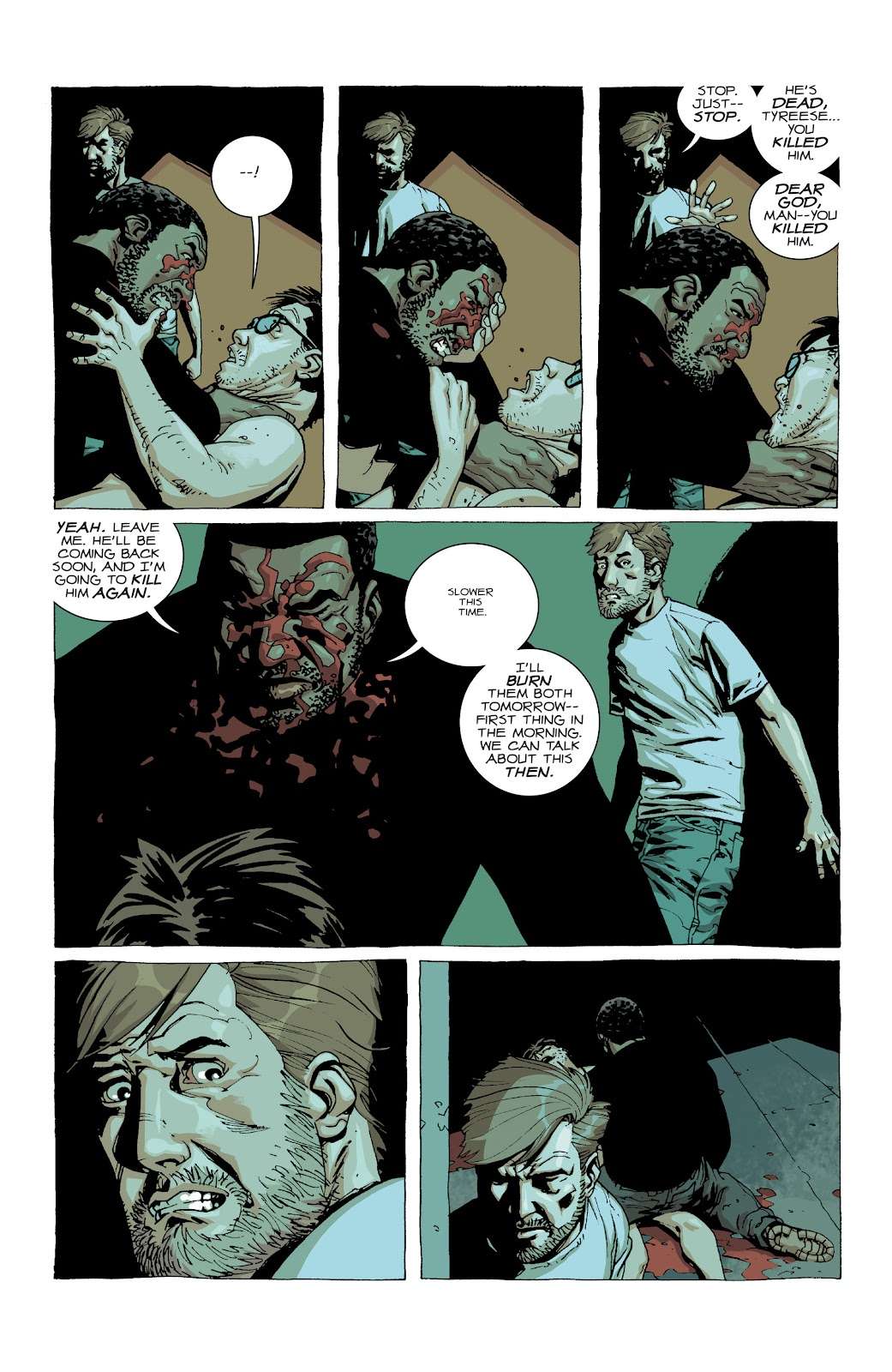 وقتی ریک این حقیقت را کشف میکند، یک سفر یک نفره را به مکان قبر شین آغاز میکند. ریک در آن جا جنازه زامبی شده شین را از خاک بیرون میکشد و به عنوان آخرین خدمت برای دوستی گذشتهشان او را از بین میبرد. هر چند شین را دوباره دفن نمیکند تا دوست سابقش بیرون از قبل بگندد.