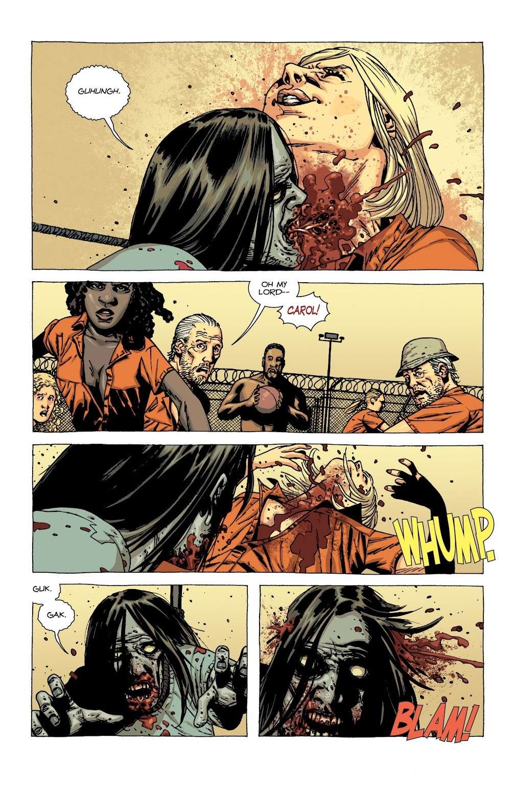 ضربه نهایی در آرک داستانی زندان هنگامی وارد میشود که لوری، همسر ریک، پیشنهاد کارول برای یک ازدواج چند همسری را رد میکند. در حالی که دیگران مشغول یک بازی بسکتبال بودند، کارول به سراغ یک زامبی میرود که بقیه بازماندگان برای اهداف تحقیقاتی او را زنده نگه داشتهاند. کارول اجازه میدهد تا این زامبی گلوی او را گاز بگیرد. وقتی دیگر اعضای گروه متوجه میشوند که چه اتفاق افتاده، دیگر برای نجات کارول خیلی دیر شده است. کارول به خاطر خون ریزی زیاد میمیرد، تبدیل به زامبی میشود و آندریا خلاصش میکند.