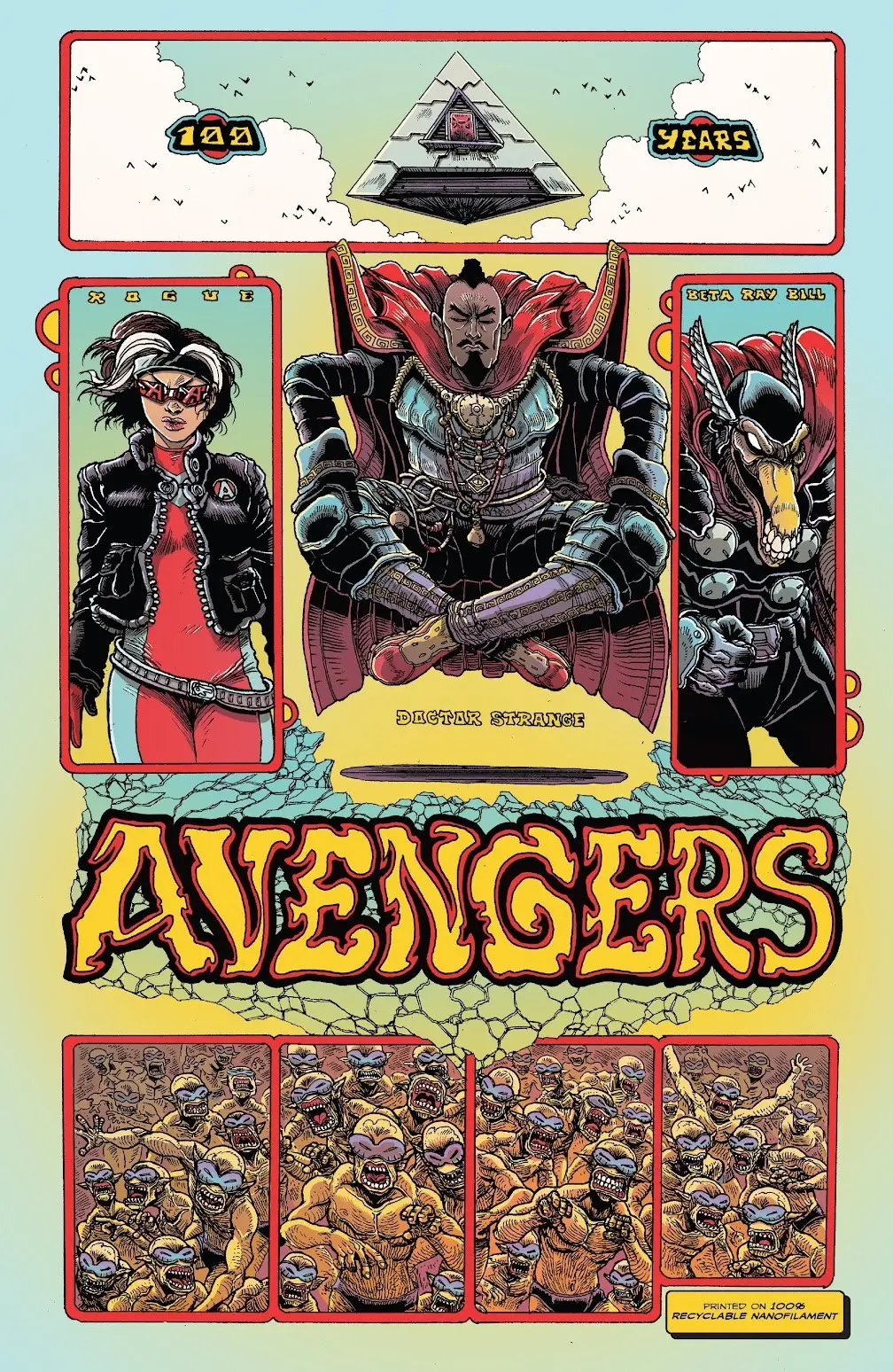 در کمیک 100th Anniversary Special: Avengers، یک ظاهر خوشایند و پیچیده را از جادوگر عالیرتبه زمین میبینیم. طراحیهای این سری، ظاهر احتمالی اونجرز در ۵۰ سال آینده را به نمایش میگذارند که در بین آنها استرنج یک پوشش درهم و برهم ولی گیرا دارد.