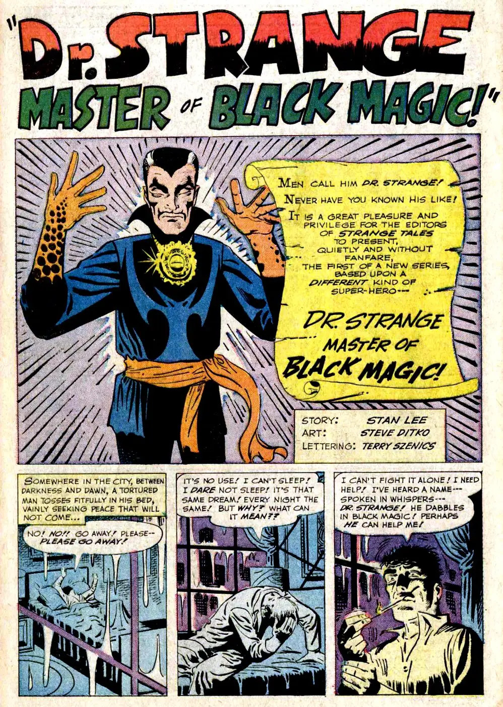 دیتکو در طراحی شخصیتها مهارت بالایی داشت و جای شگفتی نیست که نخستین لباس دکتر استرنج در چنین لیستی حاضر باشد. با این که نخستین پوشش استیون استرنج نسبت به لباس کلاسیک شناخته شدهاش کمتر زرق و برق داشت ولی استاندارد کم و بیش تمام پوششهای آتی را تعیین کرد.