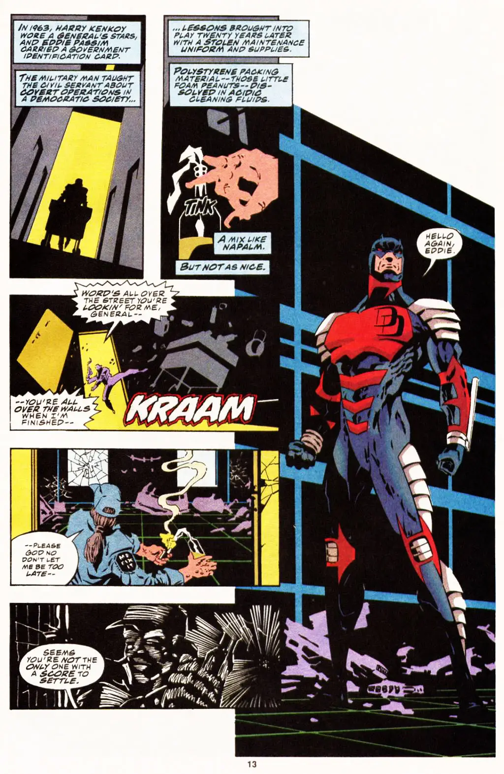فرانک میلر فرصت این را به دست آورد تا داستان اوریجین این قهرمان را با تنپوش ویژهای بازروایی کند. این سری کوتاه با نام Daredevil: The Man Without Fear روزهای آغازین مبارزه با جنایت مت و عشق نافرجامش با الکترا را به نمایش میکشد. پیش از این که دردویل با پوشش کلاسیک خود ظاهر شود، او یک لباس سراسر مشکی را میپوشید که شباهتهایی با یونیفرم یک نینجا داشت. هر از چند گاهی میبینیم که مت مورداک از این پوشش خود دوباره استفاده کند.