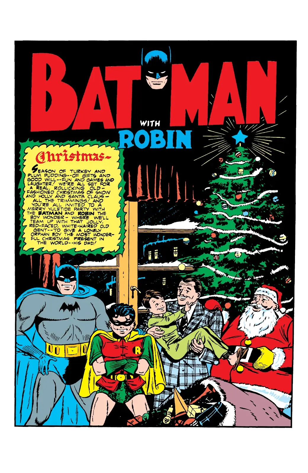 نخستین روایت کریسمسی بتمن به سال ۱۹۴۱ و شمارهی ۹ کمیک Batman بازمیگردد که چندان از فرمول استاندارد داستانهای دوران خود دور نشده بود. در این ماجرا شاهد یک انسان بیگناه، یک رئیس تبهکار به اسم هال فینک و حتی یک تلهی مرگبار هستیم که بتمن و رابین باید از آن جان سالم به در ببرند. با این وجود، همهچیز تم کریسمسی دارد.
