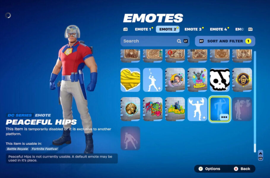 اپیک گیمز پس از انتشار جدیدترین قسمت از فصل دوم سریال Peacemaker، ایموت Peaceful Hips این شخصیت را در فورتنایت غیرفعال کرد و وعده داد که در صورت بازنگشتن این آیتم، هزینه آن را به بازیکنان بازمیگرداند.