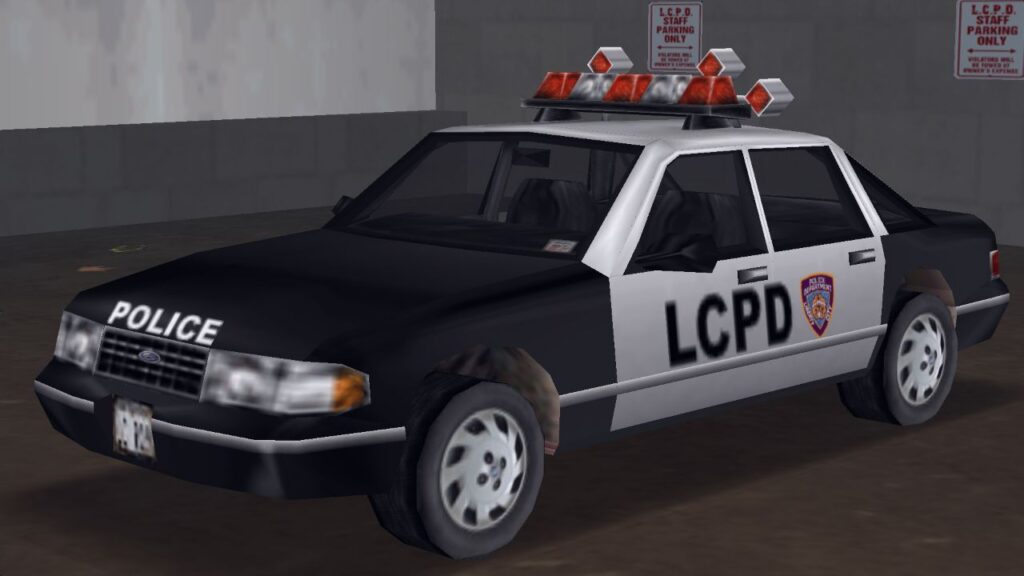 ماشین پلیس در GTA III طراحی خود را از روی Chevrolet Caprice و Ford Crown Victoria گرفته، خودروهایی که زمانی جزو ناوگان پلیس ایالات متحده بودند. علامتها و نشانههای LCPD روی این خودرو نیز شباهت زیادی به خودروهای LAPD دارد و با توجه به الهامگیری شهر بازی از لسآنجلس، چندان هم جای تعجب ندارد.