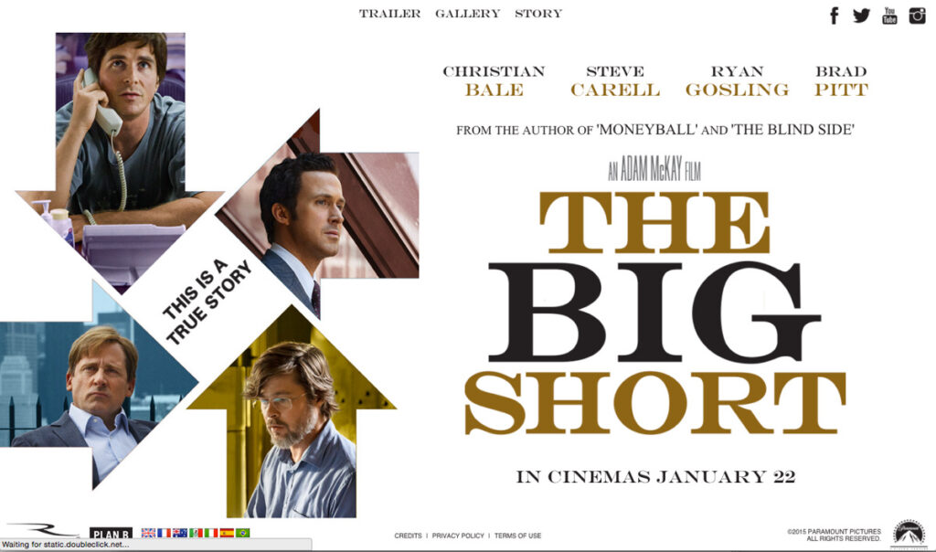 این فیلم دارای گروه بازیگری بسیار درجه یک از جمله استیو کارل، رایان گاسلینگ، برد پیت، ماریسا تومی و کریستین بیل است؛ رکود بزرگ نقدی تند بر کسانی است که در بالاترین سطوح ثروت قرار دارند. اینکه چگونه آنها ملت را فریب دادند تا منجر به یک فاجعه اقتصادی جهانی شود.