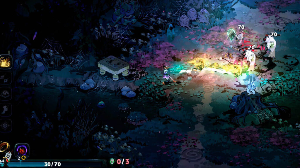 - نکات منفی: نیاز فراوان به Magick دارد. در فواصل نزدیک میتواند گزینههای کمی را برای حمله و دفاع به بازیکن بدهد. دشمنانی که به عقب فرستاده نمیشوند میتوانند به سادگی به Melinoe نزدیک شوند.