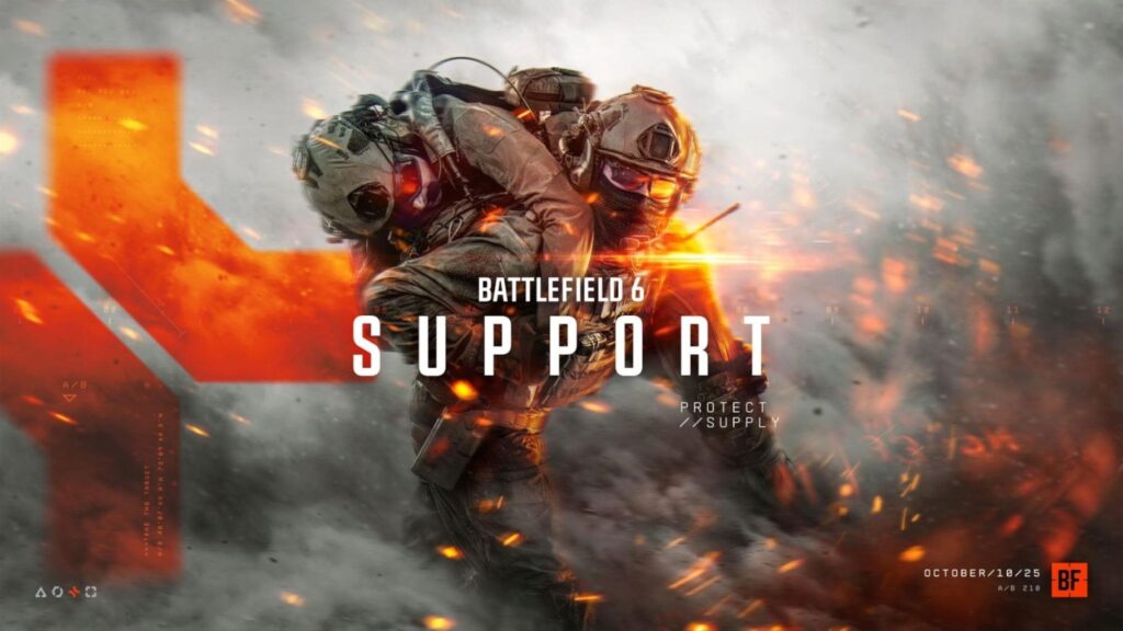 کلاس Support به صورت خلاصه نقش قهرمان را در بازی بتلفیلد ۶ اجرا میکند. بازیکنان Support، پزشکانی هستند که با سرعت وارد مبارزه میشوند تا همتیمیهای سقوط کرده را زنده کنند و تعداد افراد تیم را در نقشه ثابت نگه دارند. آنها همچنین با کیفهای کمکهای اولیه هیل و تیر برای تیم خود مهیا میکنند. برخی از مودها بستگی به تعداد ریسپاون تیم دارند بنابراین داشتن پزشکهای خوب در تیمتان میتواند برای پیروزی ضروری باشد.