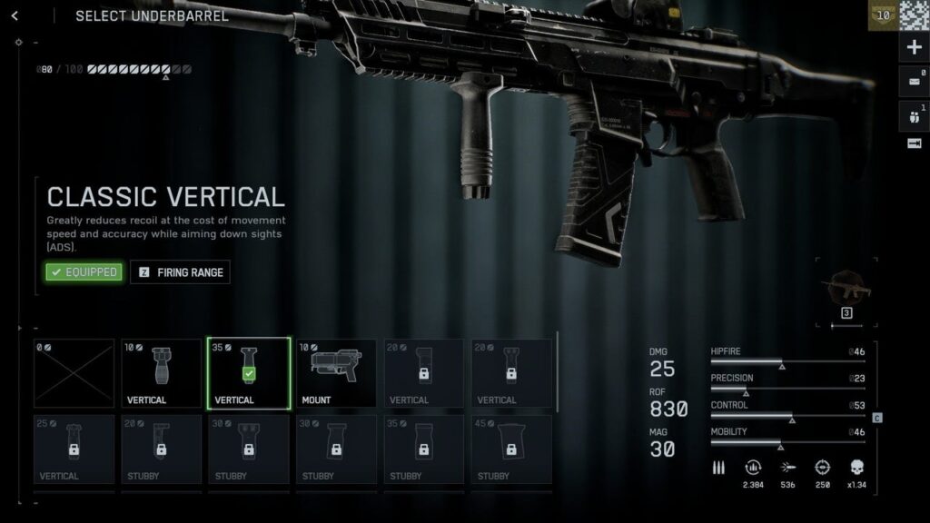 بعد از باز کردن چند قطعه برای بخش Underbarrel آنها را در میدان تیر امتحان کنید تا ببینید کدام را ترجیح میدهید.