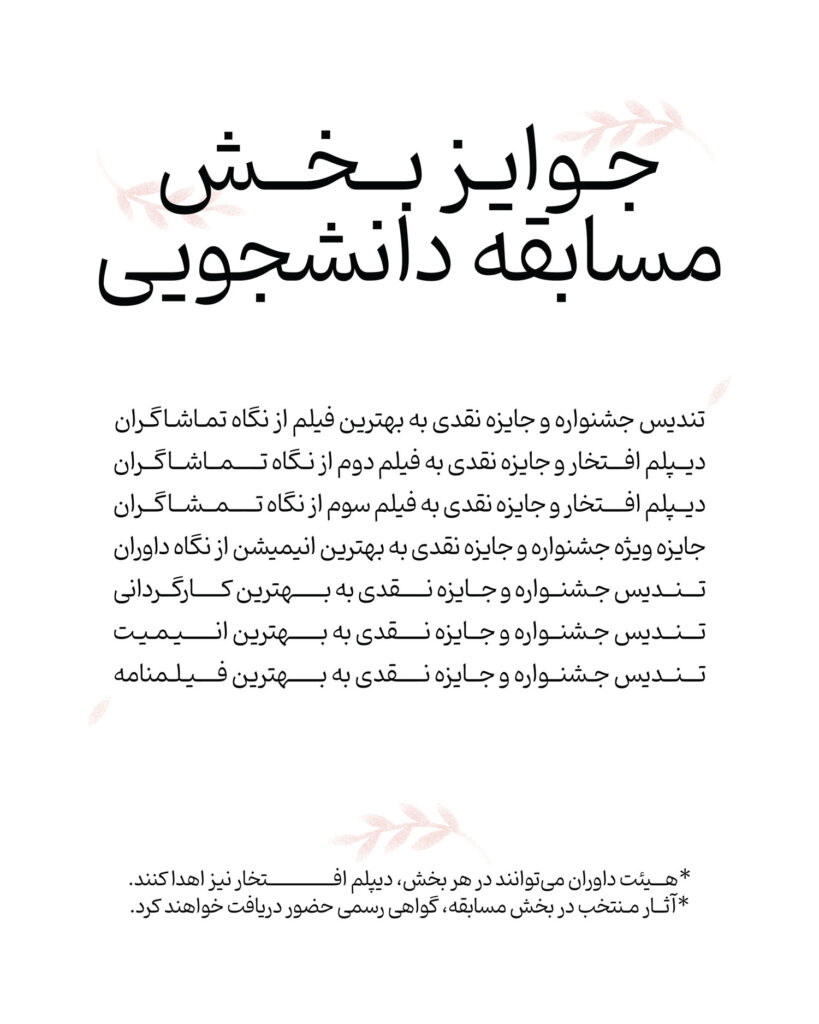(همراه با تندیس جشنواره، تقدیرنامه و جوایز نقدی)