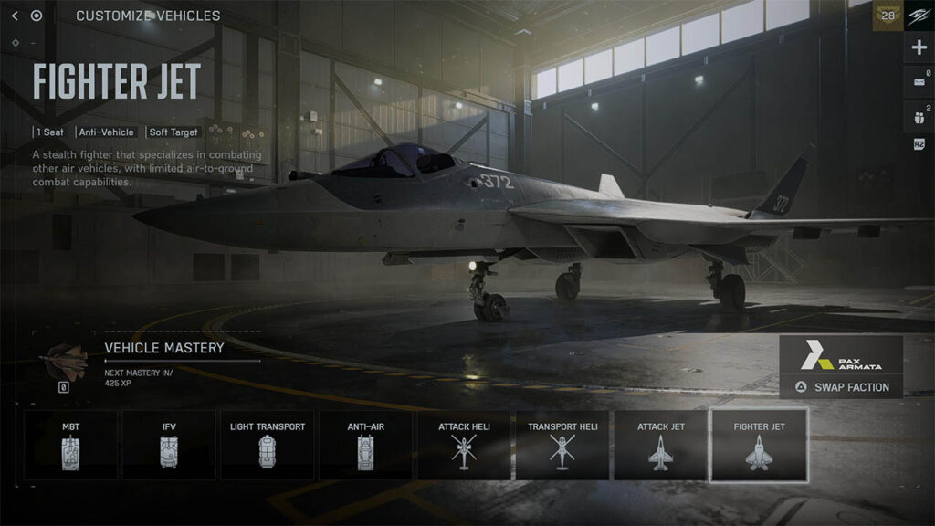 بتلفیلد ۶ با هشت نوع کلی از وسایل نقلیه در دسترس قرار دارد که هرکدام برای شرایط تاکتیکی مختلف و نقشهای مشخصی در مبارزه طراحی شدهاند. شما هر نوع ماشینی را میتوانید پیدا کنید، از تانکهای زمینی زرهدار گرفته تا جنگندههای هوایی که هرکدام از این وسایل نقلیه به نوعی دست بالاتر را در میدان مبارزه به تیم میدهند.