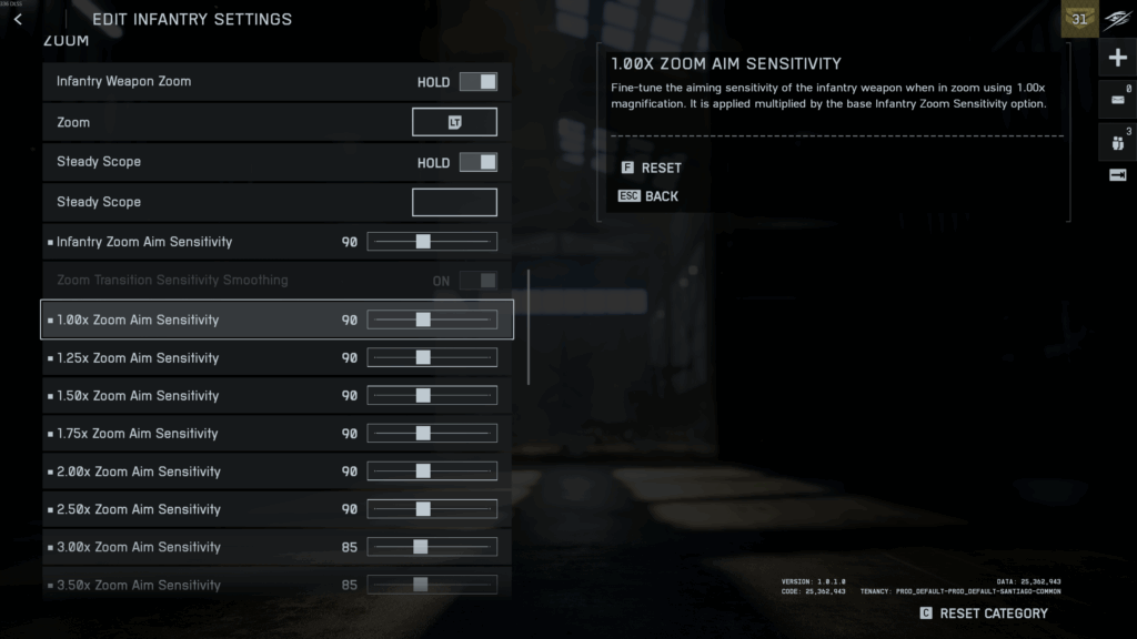 - Infantry Zoom Aim Input Curve: BF1, BF4