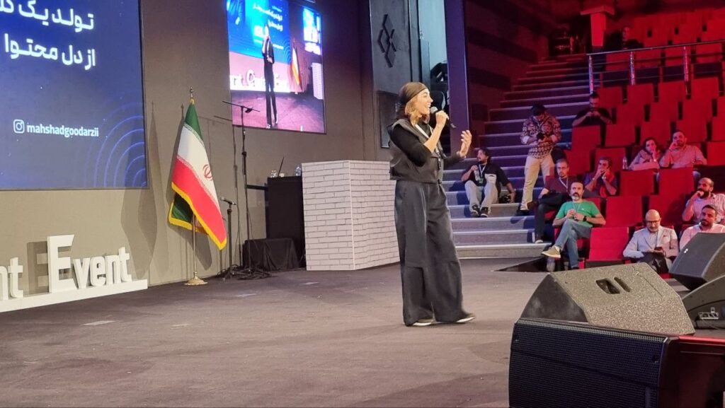 سخنرانی بعدی توسط مهشاد گودرزی، اینفلوئنسر ورزشی (با نام کاربری mahshadgoodarzii در اینستاگرام) و همبنیانگذار پلتفرم «مونوپی» با محوریت «تولید یک کسب و کار از دل محتوا» برگزار شد. او درباره اهمیت «کامیونیتی مارکتینگ» بدین شکل صحبت کرد: