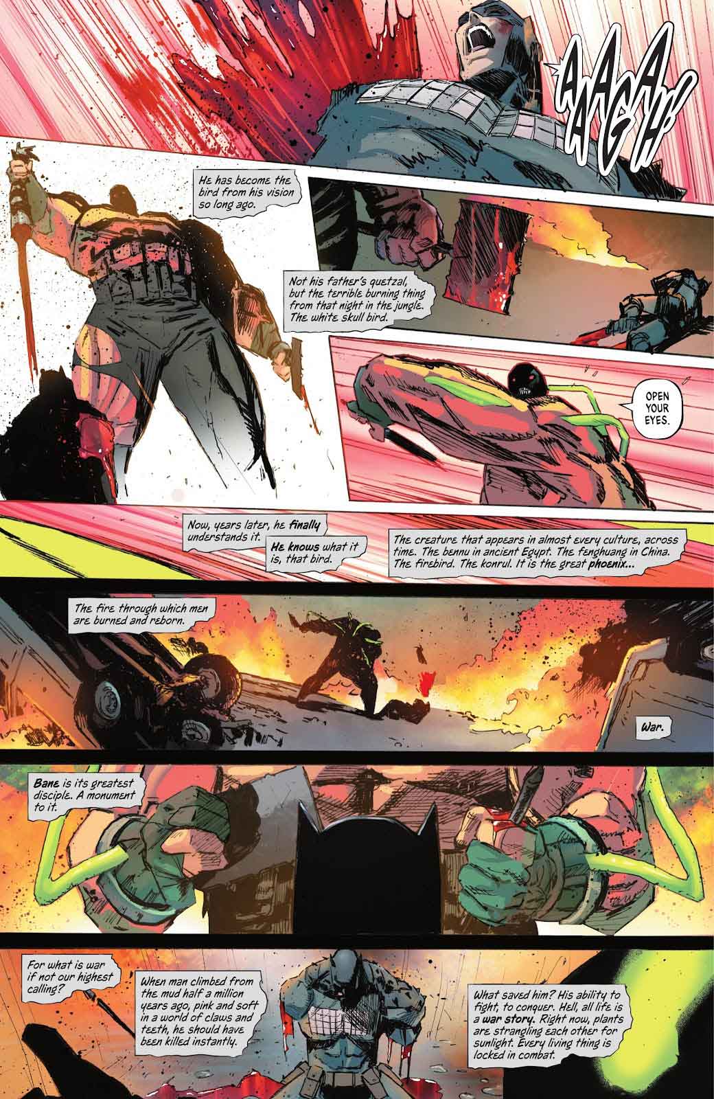 آلفرد نبردی بین شوالیه تاریکی و بین را تصور میکند که در آن بین با استفاده از تبر بتمن، دستهایش را قطع و سپس جمجمهاش را خرد میکند تا راهی بیمارستان شود و بدن او به کمک ونوم بازسازی شود. هر چند همه این سکانس در تصورات آلفرد است اما به معنای این نیست که بهتآور محسوب نمیشود. در هر حال، چنین چیزی باعث میشود تا نگران نبرد آتی بین شوالیه شنلپوش و بین شوید.