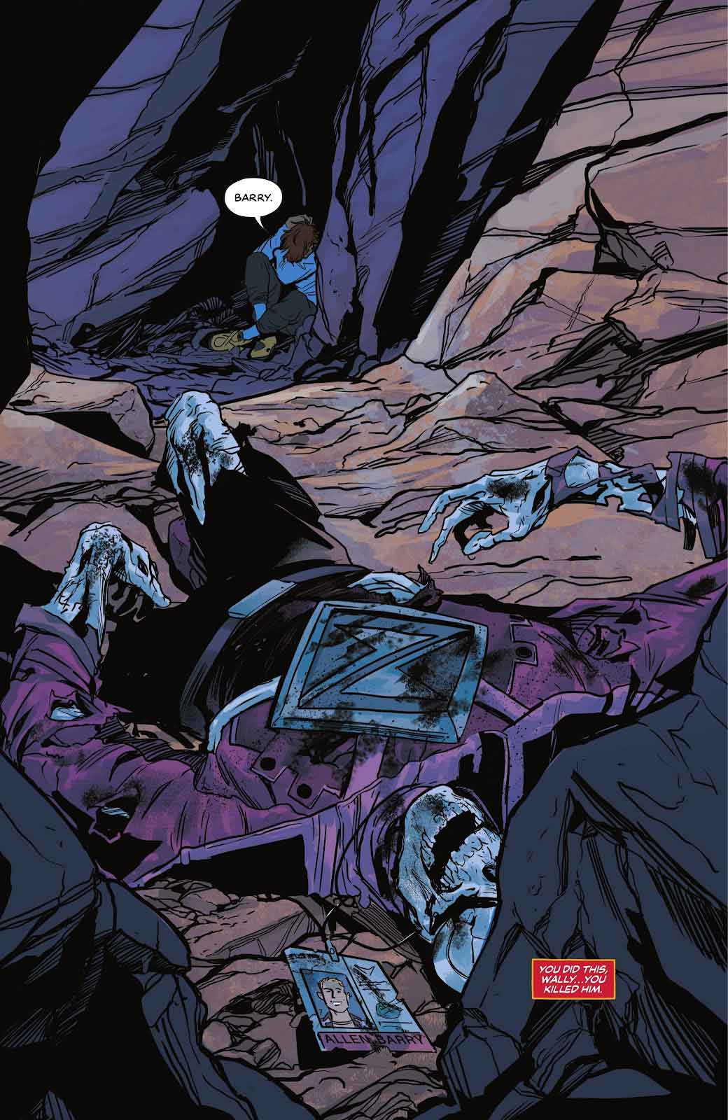 شماره ۱ کمیک Absolute Flash با رونمایی از این حقیقت به پایان میرسد که بری در سانحه آزمایشگاهی که به والی قابلیتهای فراانسانی داد از بین رفته است. اگر چنین چیزی به اندازه کافی بهتآور قلمداد نمیشود، یک فلشبک در شماره ۲ نشان میدهد که در واقع ممکن است این خود والی بود که پس از این رویداد با یک تخلیه آذرخشی منجر به مرگ بری شده باشد. بدین گونه، ماجرای والی کاملا متفاوت پیش میرود تا به تنهایی در برابر دنیا قرار بگیرد، فرار کند و مجبور شود با احساس گناهی که به خاطر کشتن اتفاقی بری روی او سنگینی میکند سر و کله بزند.
