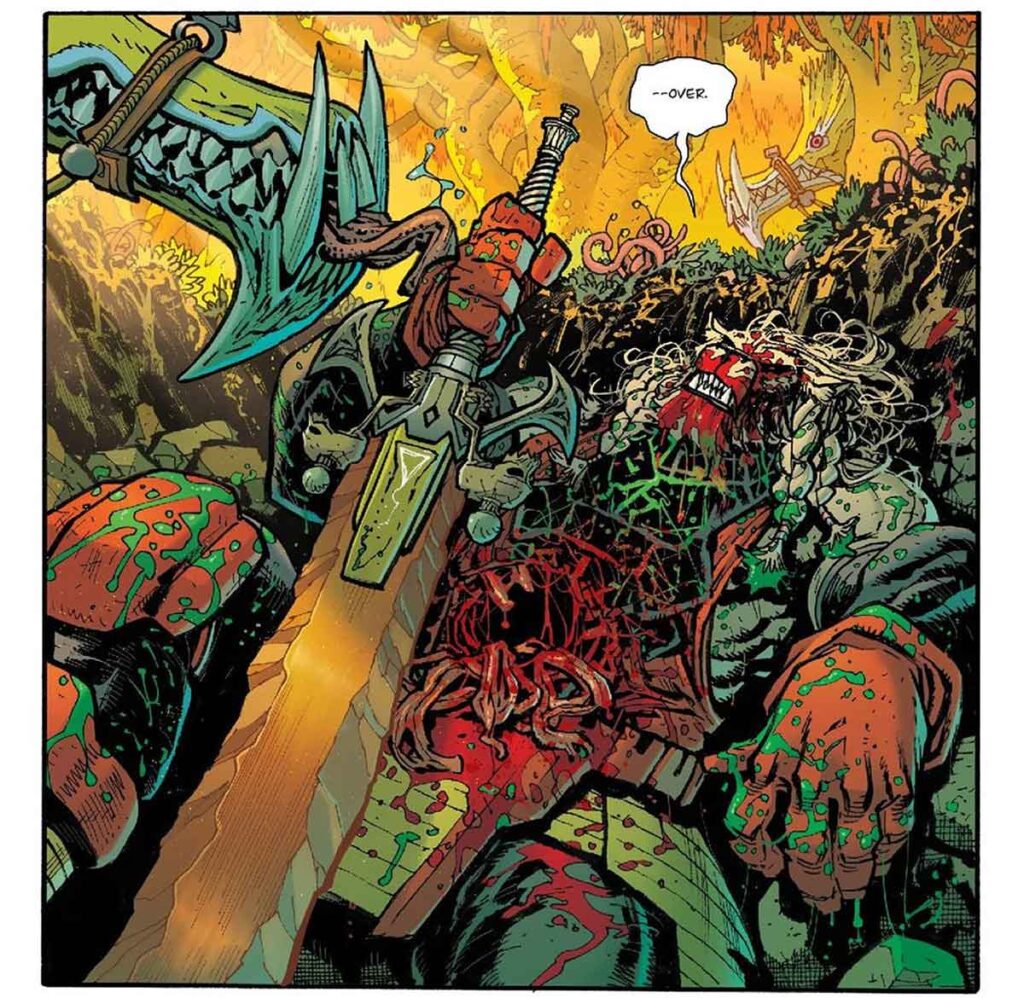این درونمایههای کمدی، یکی دیگر از نکات مثبتیست که میشود درباره نخستین آرک کمیک Invincible Universe: Battle Beast بیان کرد. هر چند در این اثر با ماجرایی خونین طرف هستیم که بدنها تکهتکه میشوند و قربانیها خورده، اما محتوای طنز به زیرکی راه خودش را پیدا میکند تا یادآوری کند که همه جهان اینوینسیبل هنوز هم یک اثر پارودی از ژانر ابرقهرمانی به شمار میآید.