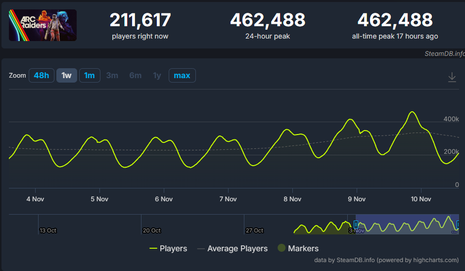 بازی Arc Raiders از زمان انتشار در چند هفته گذشته رشد چشمگیری را تجربه کرده است. تنها در ۳۰ دقیقه پس از عرضه، شمار بازیکنان همزمان آن به ۱۰۰ هزار نفر رسید و چند روز بعد برای مدتی کوتاه از Battlefield 6 هم پیشی گرفت. به نظر میرسد جامعه بازیهای ویدیویی به شدت به اکسترکشن شوتر جدید استودیوی Embark علاقهمند شده و بعید است این شور و اشتیاق به این زودی فروکش کند.