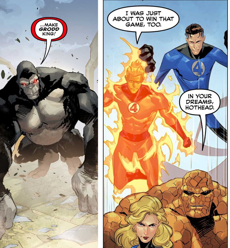 پس چرا دیسی و مارول تصمیم گرفتند تا این دو فرانچایز ظاهرا متفاوت را در قالب کمیک DC/Marvel: The Flash/Fantastic Four در اختیار مخاطبان قرار دهند؟ پاسخ این پرسش، ذات روایتهای فلش و چهار شگفتانگیز است. هر دوی این فرانچایزها روی المان ماجراجوییهای علمی-تخیلی سوار میشوند تا مخاطبان خود را به دل دنیاها و رویدادهای غیرقابل باور ولی هیجانانگیز بکشانند و تلاش کنند با راهحلهای نسبتا منطقی به حل چالشهای خود پردازند.