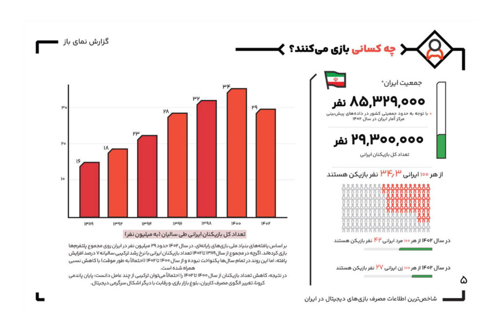 گزارش نمای باز ۱۴۰۲ توسط بنیاد ملی بازیهای رایانهای منتشر شد | تعداد گیمرها در ایران کاهش یافته است