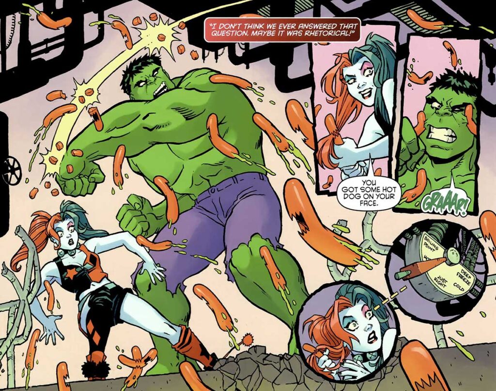 با این که ددپول در کنار بتمن در بخش اصلی کمیک DC/Marvel: Batman/Deadpool قرار گرفت اما این روایت Harley & Hulk's Amazin' Saturday!!!! است که لقب کمدیترین قسمت این اثر را به خود اختصاص میدهد. همه رویدادها و اتفاقاتی که در ماجرای مشترک هارلی کویین و هالک میبینیم طنز خالص است و عملا داستان به عنوان بهانهای برای در کنار هم قرار دادن شهبانوی تبهکاری دیسی و غول سبز نامهربان مارول قلمداد میشود.