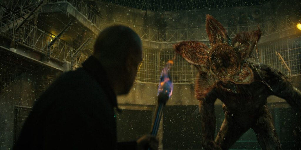 در ادامه، هاپر و نگهبان دوست داشتنی اما فاسد یعنی انزو دستگیر میشوند و سپس توسط زندانبانان راهی میدان نبرد علیه این دموگرگن میشوند. سایر زندانیان خیلی زود در حمله این هیولا کشته میشوند و سرهایشان به طرز فجیعی قطع میشود. هاپر با داشتن تجربه قبلی از این موجود، از ترس این موجود نسبت به آتش استفاده میکند. او با کمک یک مشعل بزرگ جان خود و انزو را نجات میدهد و حمله هیولا را دفع میکند.