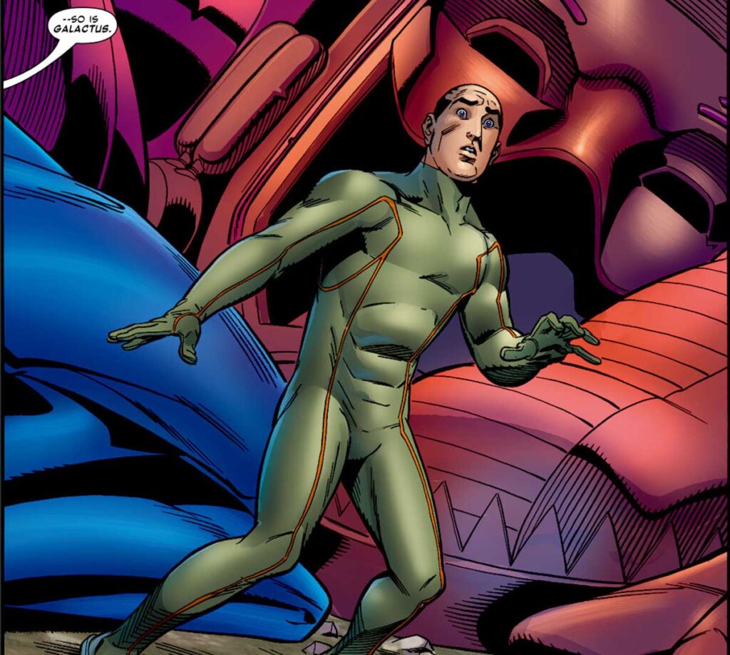 یک زمانی بود که گالاکتوس تنها یک مرد با اسم گالان به حساب میآمد. با این وجود، به خاطر جایگاه ویژهای که داشت تبدیل به تهدید غولآسایی شد که از سیارهها تغذیه میکند. هیومن تورچ پس از مدت کوتاهی فعالیت در جایگاه قاصد گالاکتوس توانست از نیروی کیهانی خود بهره ببرد تا در شماره ۵۲۲ کمیک Fantastic Four، دوباره گالاکتوس را به شکل پیشین خود بازگرداند.