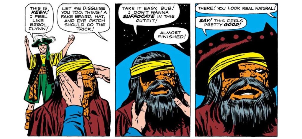 با بهره بردن از این پنجره بازشده، رید جواهرات درون صندوق را به دست میآورد. هر چند، ثینگ که نقش خود را در جایگاه بلکبیرد پذیرفته بود و میخواست در زمان گذشته باقی بماند. هنگامی که ثینگ سعی میکرد تا همتیمیهایش را از خود دور کند، یک طوفان سهمگین باعث نابودی کشتی شد. در پایان، دووم این سه نفر را به زمان حال برگرداند و بن گریم نیز به خاطر کاری که تلاش داشت بکند از دیگر اعضای فنتستیک فور پوزش خواست.