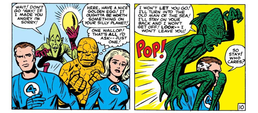 چهار شگفتانگیز در دومین ماجراجویی تیمی خود با اسکرالها برخورد کردند. اسکرالها نژادی بیگانه هستند که قابلیت دگرگونی ظاهر خود را دارند و توجهشان به زمین جلب شده است. در شماره ۲ کمیک Fantastic Four، این فضاییها ظاهر فنتستیک فور را به خود گرفتند و آغاز کردند به انجام جنایت. با این اوصاف، رید با استفاده از تصاویری که از کمیک بوکها استخراج کرده بود کاری کرد تا این بیگانگان از ترس این که زمین پر است از هیولاهای غولآسا از تلاش برای به چنگ آوردن آن دست بکشند.