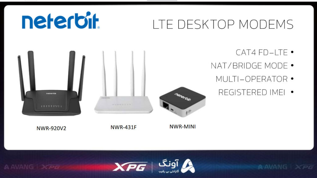 - برند Neterbit که زیرشاخه تولیدی آونگ است و روی ساخت مودمهای 4G/LTE دسکتاپ و پورتابل و همچنین انواع سوییچ و روتر تمرکز دارد