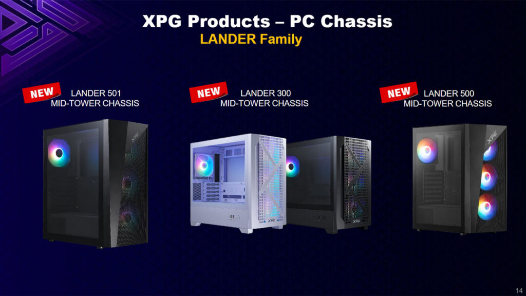 - برند XPG (مخفف Xtreme Performance Gear) به عنوان یک برند ارائهدهنده محصولات گیمینگ و پرمیوم همچون کیس، پاور، رم پیسی، خنککننده پردازنده، فن کیس، اساسدی و همچنین بهزودی مانیتور گیمینگ